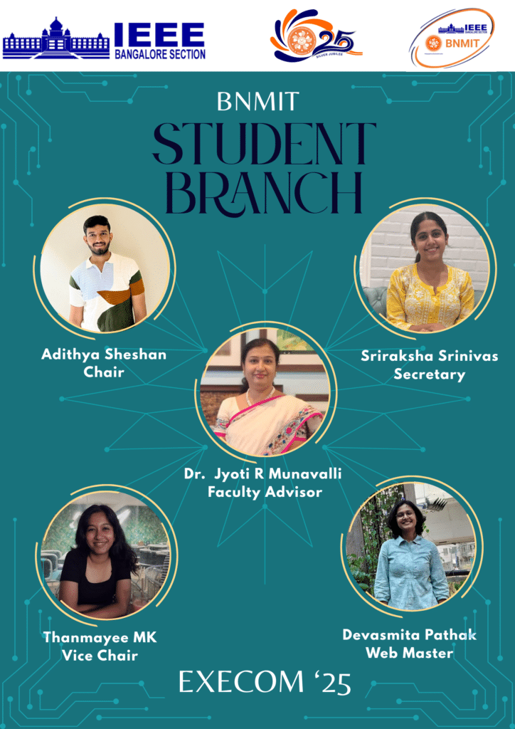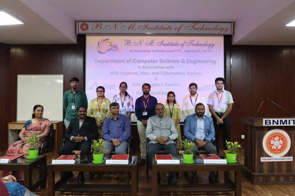 IEEE, an association dedicated to advancing innovation and technological excellence for the benefit of humanity, is the world’s largest technical professional society. It is designed to serve professionals involved in all aspects of the electrical, electronic, and computing fields and related areas of science and technology that underlie modern civilization. These include computer scientists, software developers, information technology professionals, physicists, medical doctors, and many others in addition to IEEE’s electrical and electronics engineering core. IEEE-BNMIT Student Branch has 14 Student Chapters and has been actively involved in organizing Conferences, Technical Talks, Symposiums and Workshops, Quiz, Industrial visits, Hackathon and activities related to social concern.